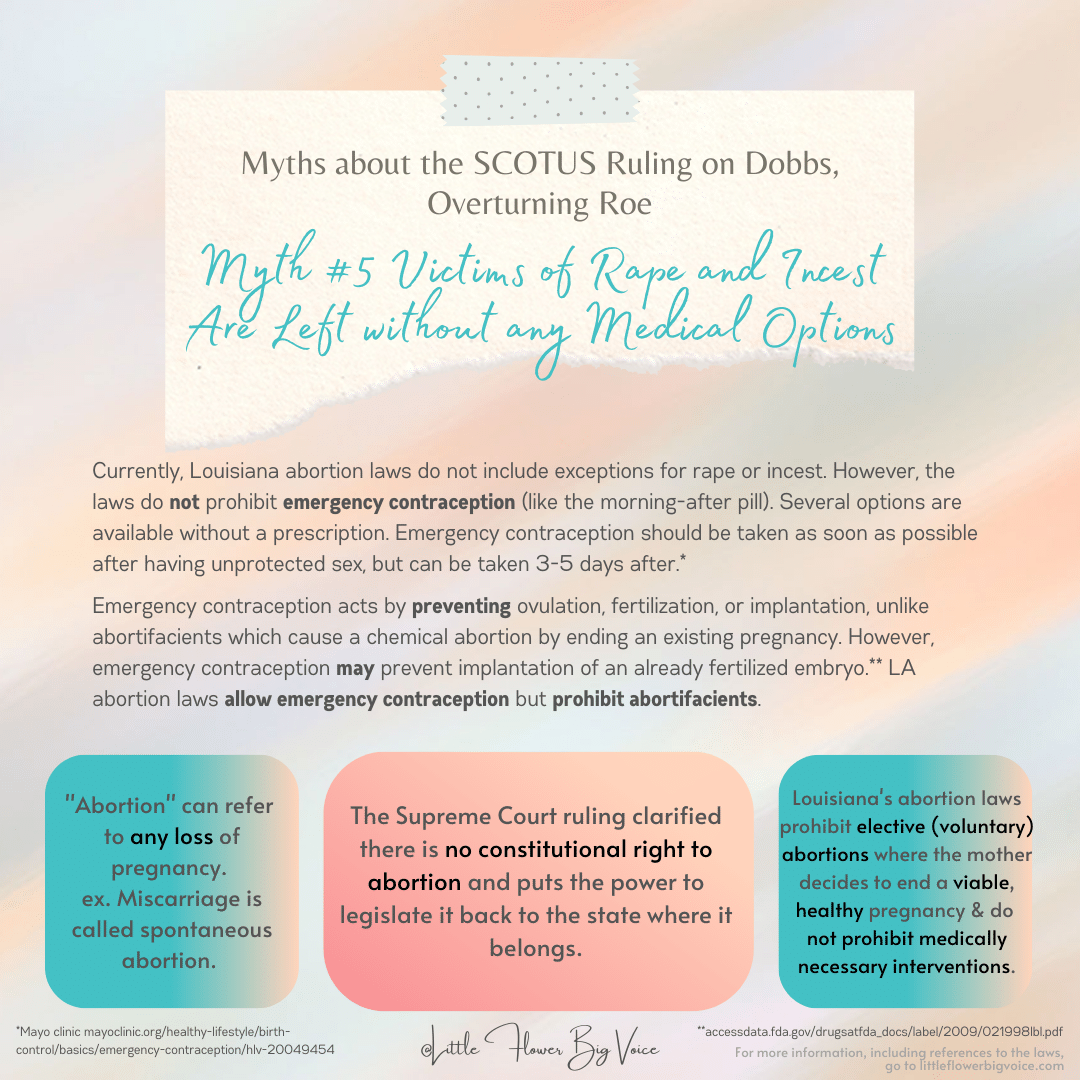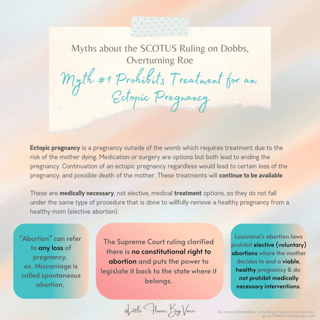 Each State can now pass its own legislation regarding abortion. Louisiana, like several other states, already had in place what’s known as “trigger laws” – laws that had been passed and signed by the Governor that would become effective immediately the moment Roe was overturned. Unfortunately, just like we saw throughout the Covid pandemic, fear mongering continues, with blatant lies being circulated to enrage and instill fear into the public, especially women.